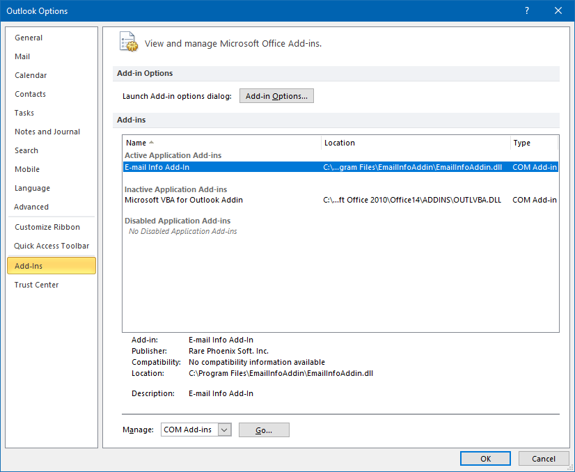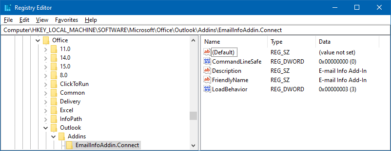 HKEY_LOCAL_MACHINE\SOFTWARE\Microsoft\Office\Outlook\Addins\EmailInfoAddin.Connect\LoadBehavior